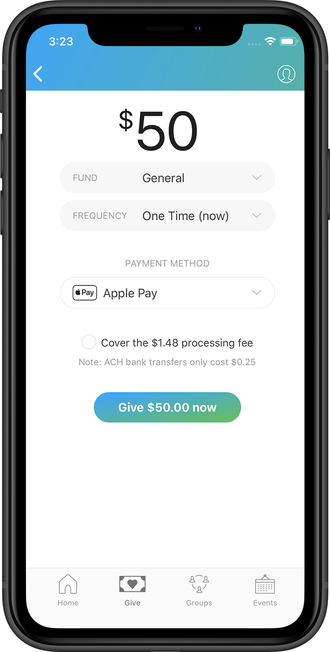 You may use the Church Center mobile app on either iOS or Android devices to make and manage your donations.